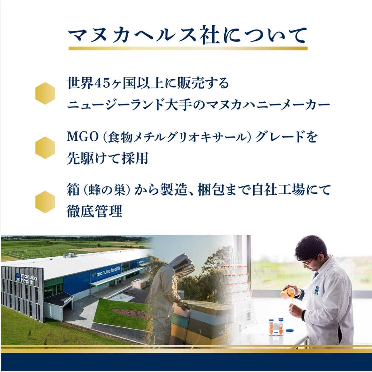 ニュージーランド固有のマヌカの花から採集されたマヌカハニーに、まろやかなニュージーランド産ハチミツをブレンドしました。