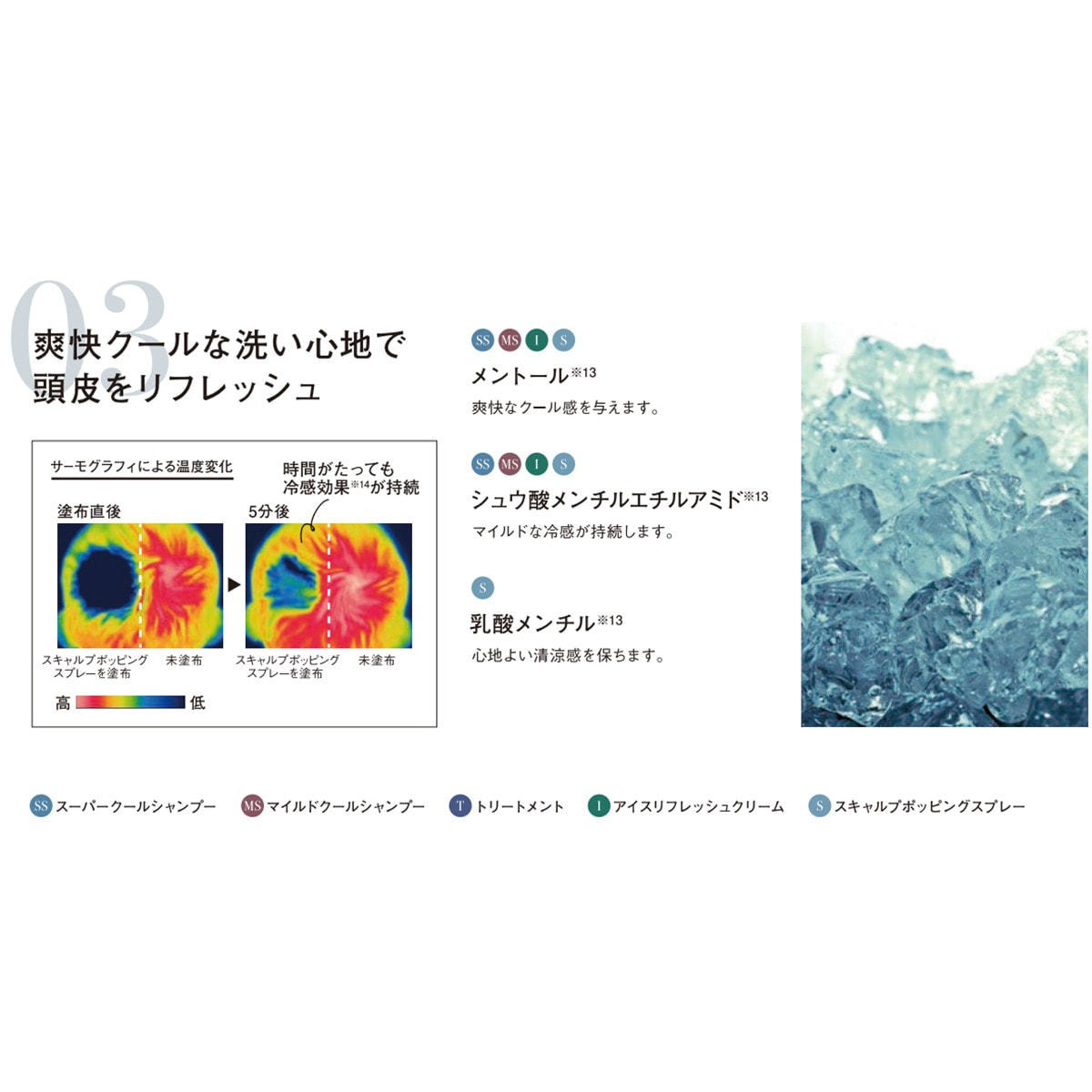 (スーパークールシャンプー/マイルドクールシャンプー/アイスリフレッシュクリーム/スキャルプポッピングスプレーに配合)